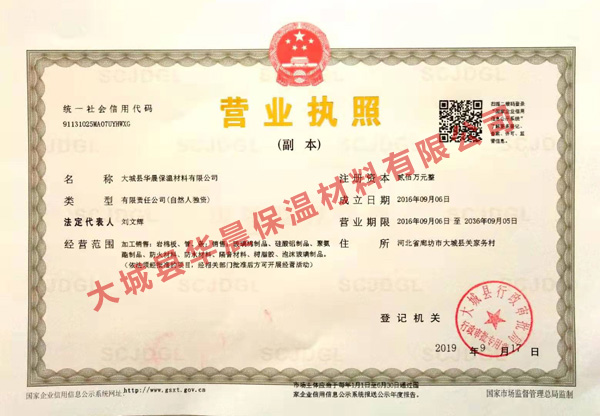 大城縣華晨保溫材料有限公司正式在工商局注冊于2016年9月6日,注冊資金200萬元人民幣。公司總部設(shè)在“中國綠色保溫建材之都”河北大城,占地60000平米,現(xiàn)年產(chǎn)巖棉制品6萬噸。